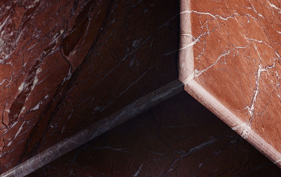 This marble has an unusual deep red colour with clean white and grey veins. Its expressive, yet relaxed, pattern gains character if honed or polished.