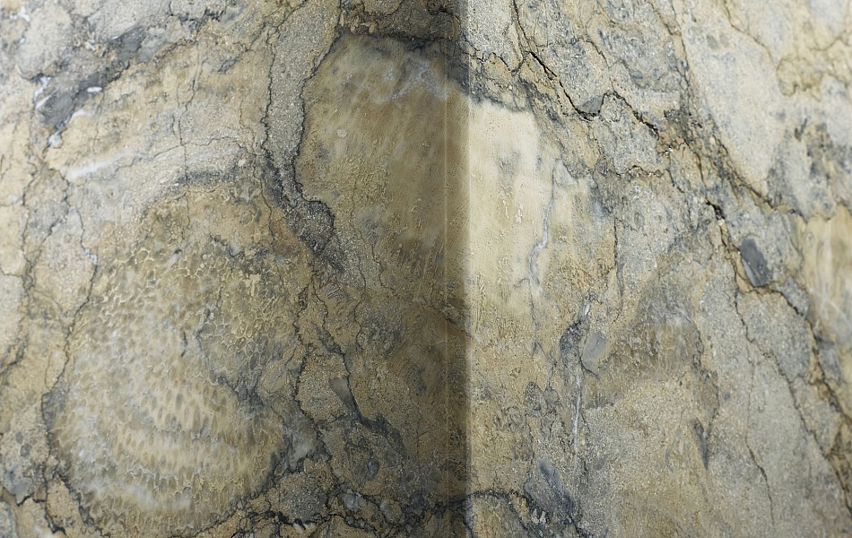 A grey background with beautiful white crystalline veins and inlays. Very versatile in its usage, it can be either honed or polished to make it stand out.